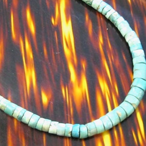 MEASUREMENTS: Measured with necklace stretched out flat and doubled by default (as you can't unfasten it to measure end to end) it measures aprox 15.5" long - so if you were able to stretch it out it would measure or equate to be about a 31" long necklace. The largest bead front and center is aprox 3/4" long x 1/4" on each of the four sides and the smallest about 1/4" long x 3/16" per side