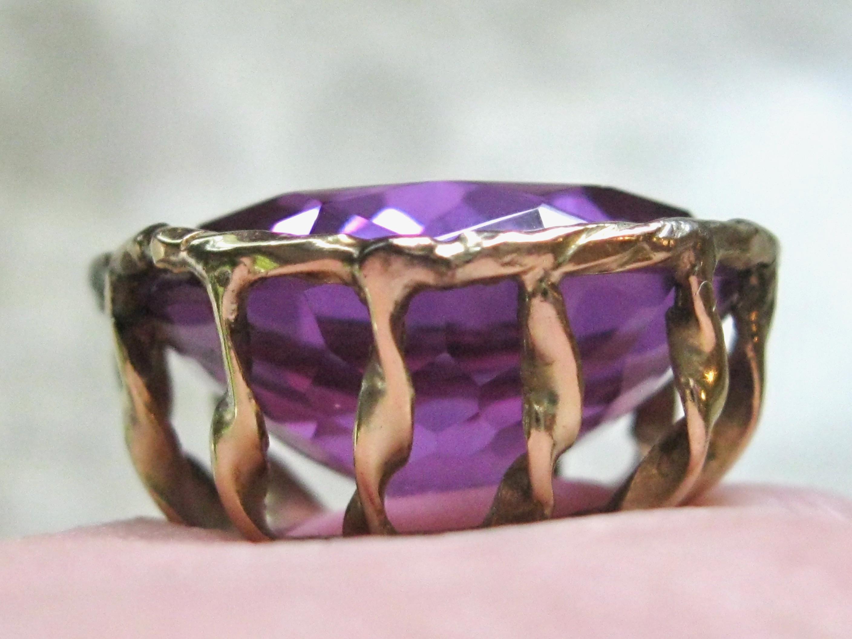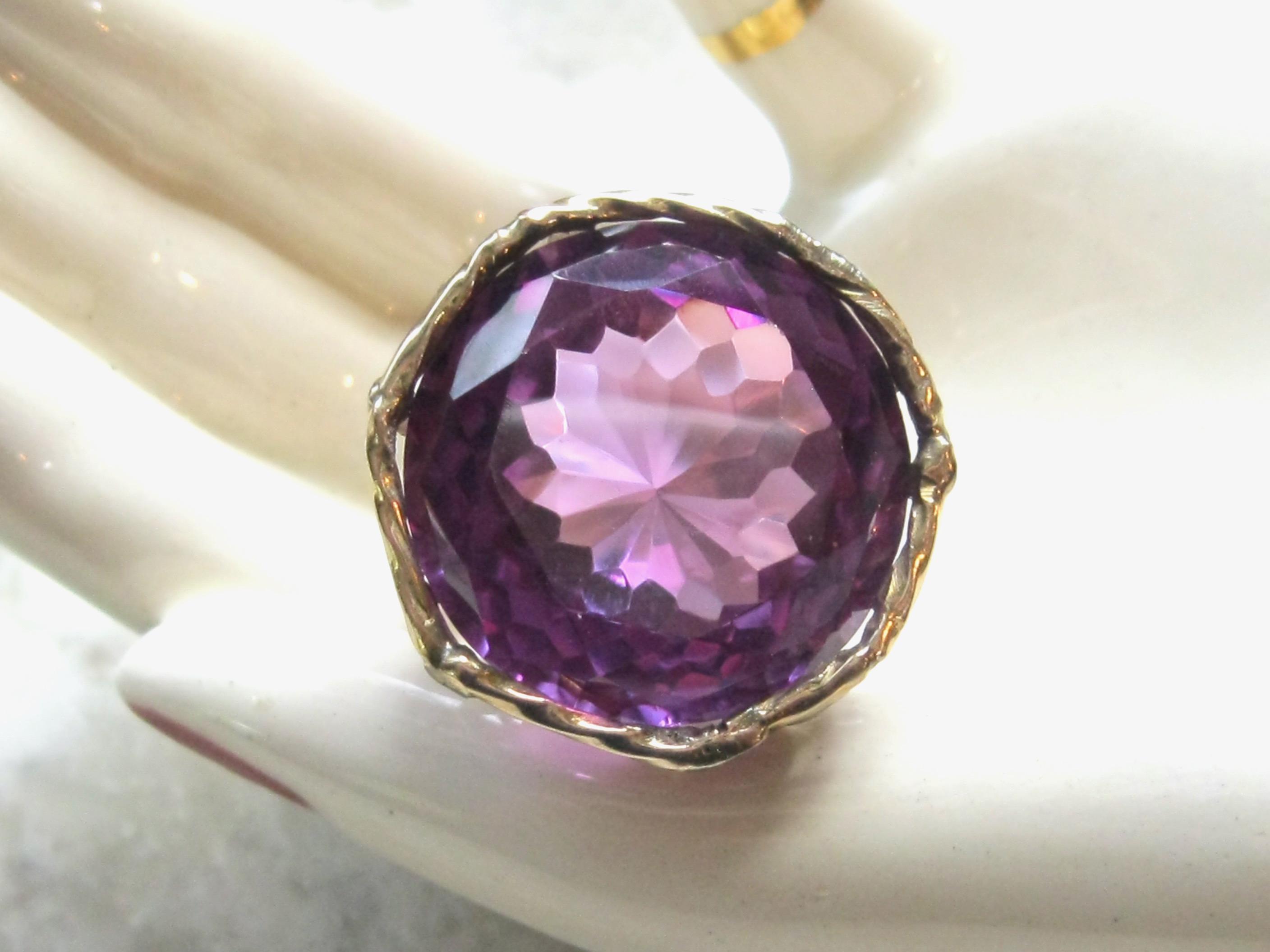 *HUGE BIG stone is fancy cut with many facets - you can see a star or flower pattern when the light reflects just right