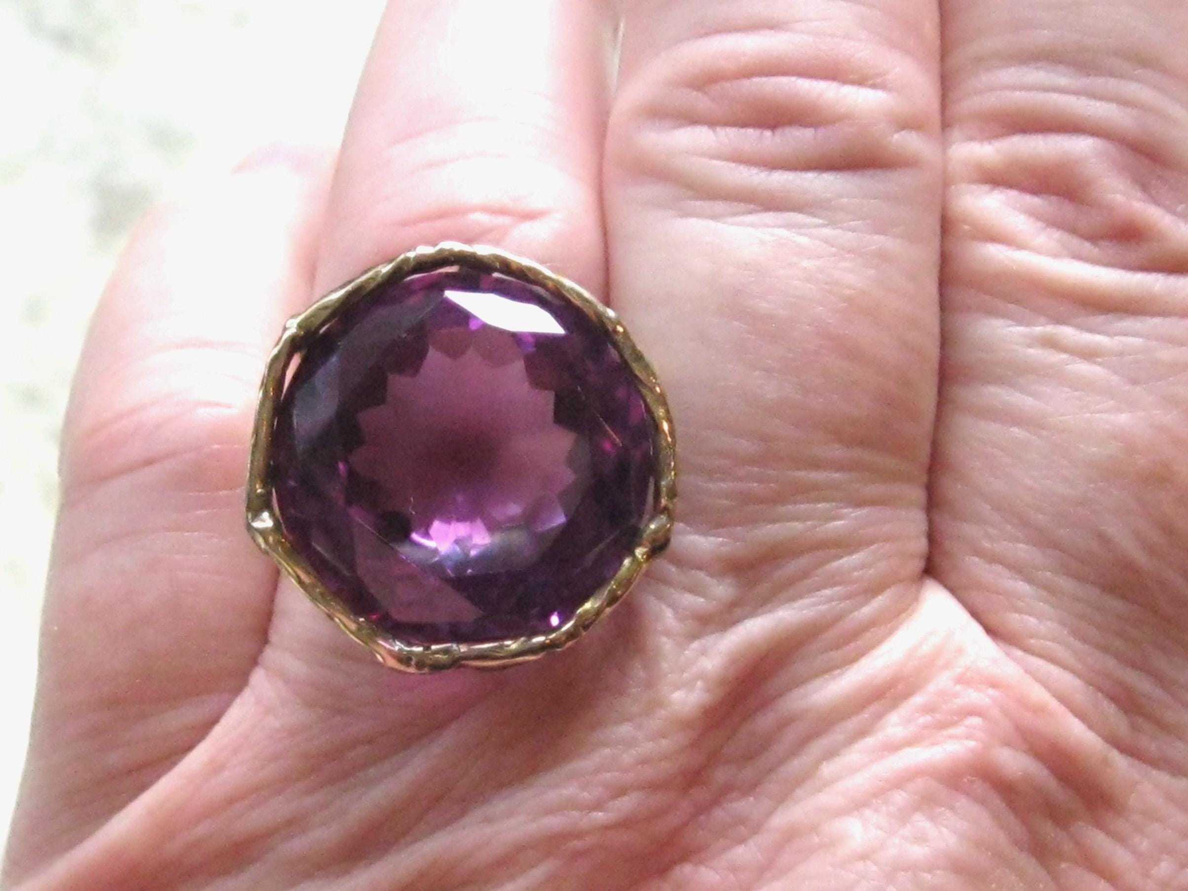 *The stone itself measures about 22 mm in diameter and with the setting included the top measures about 15/16" across. It is 1/2" tall or high. This ring is not for the faint of heart or wallflower.....it is a GIGANTIC showy statement piece that will get noticed.