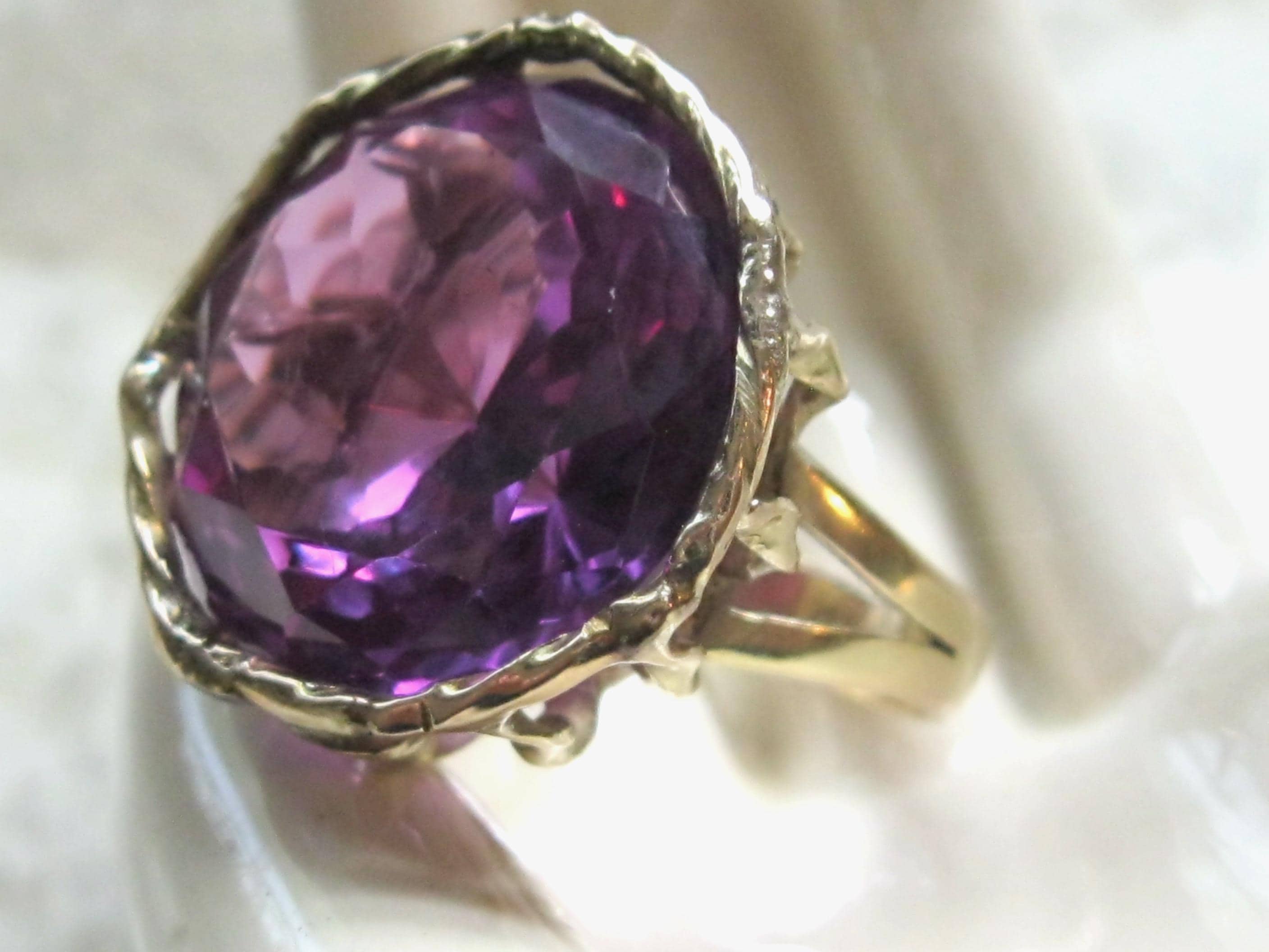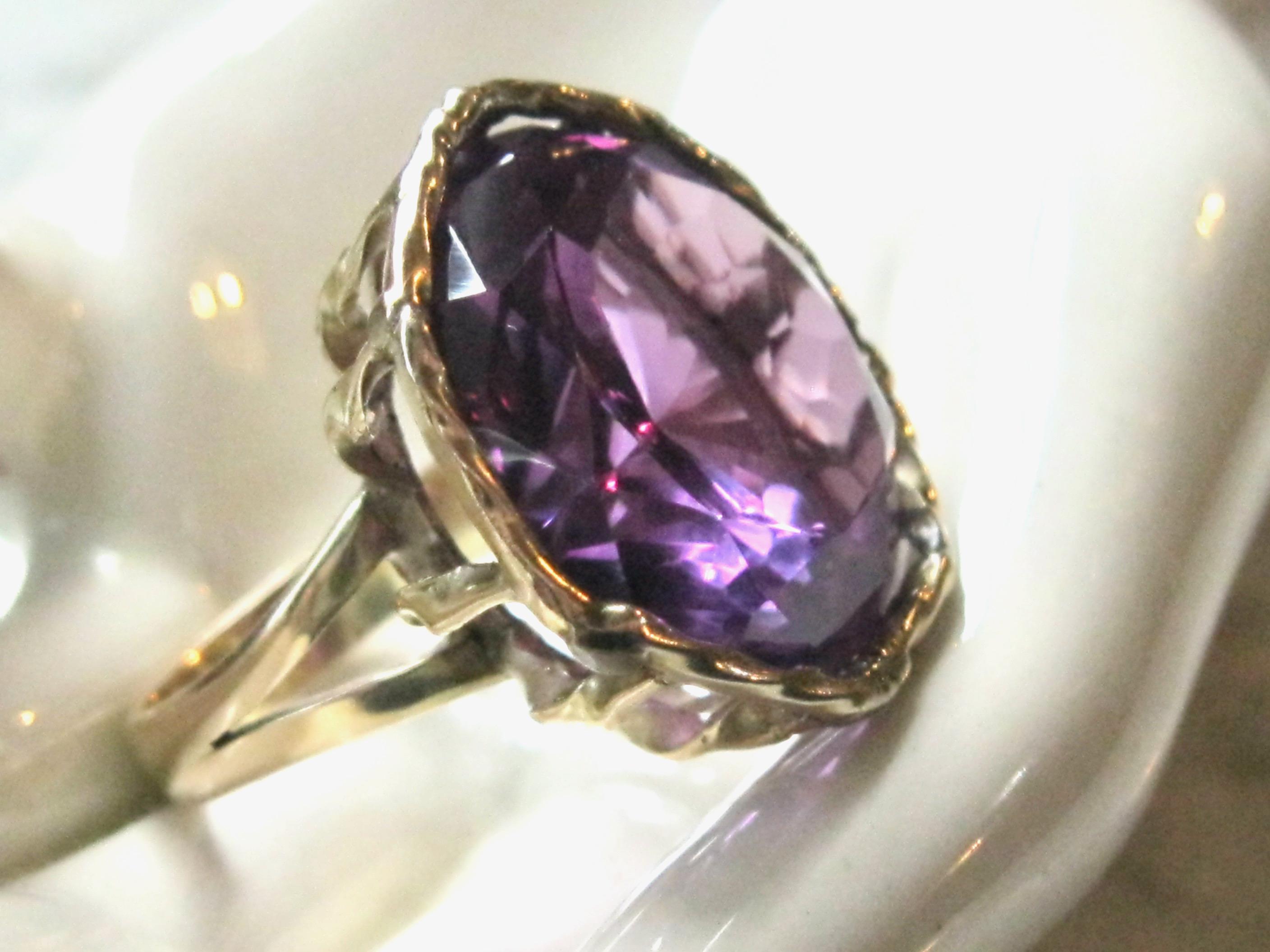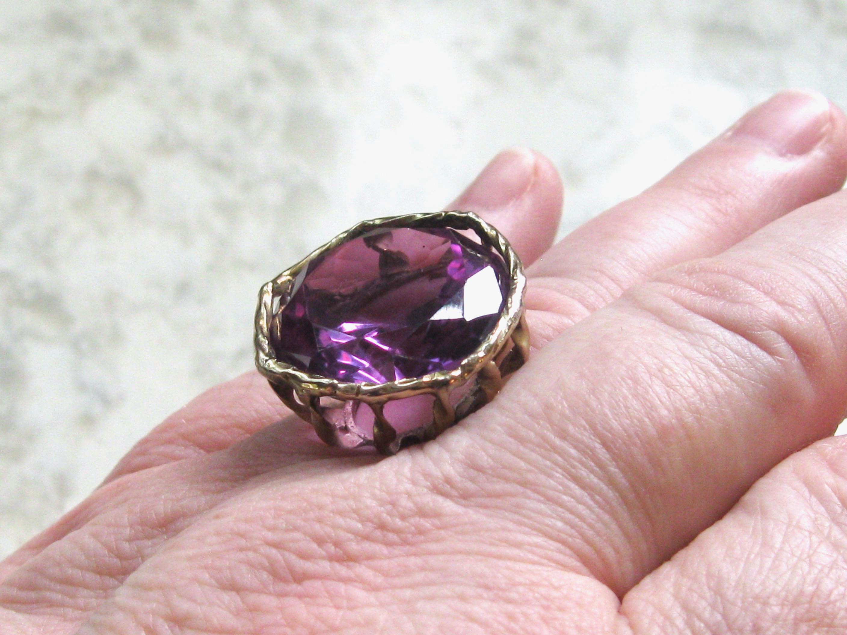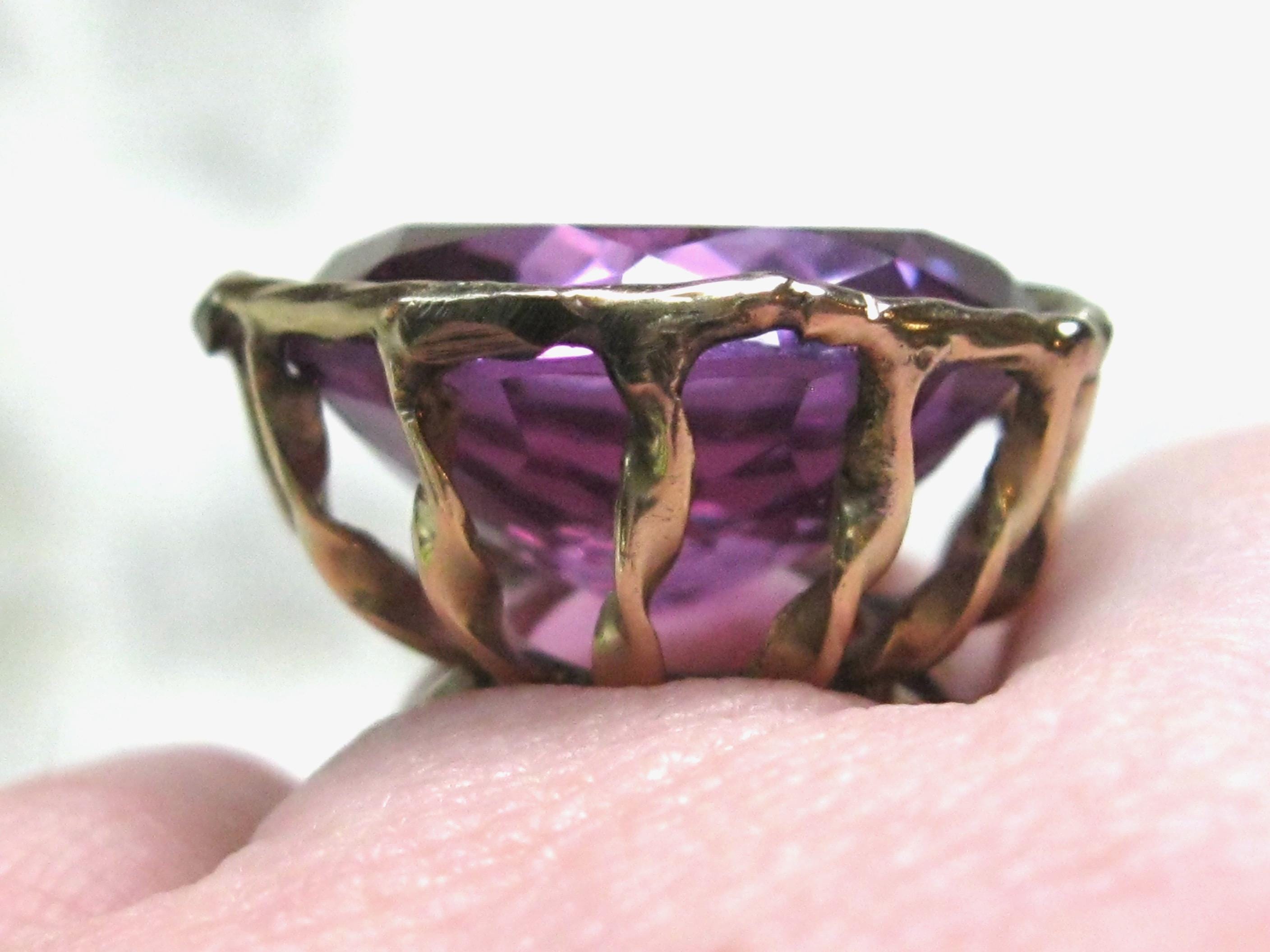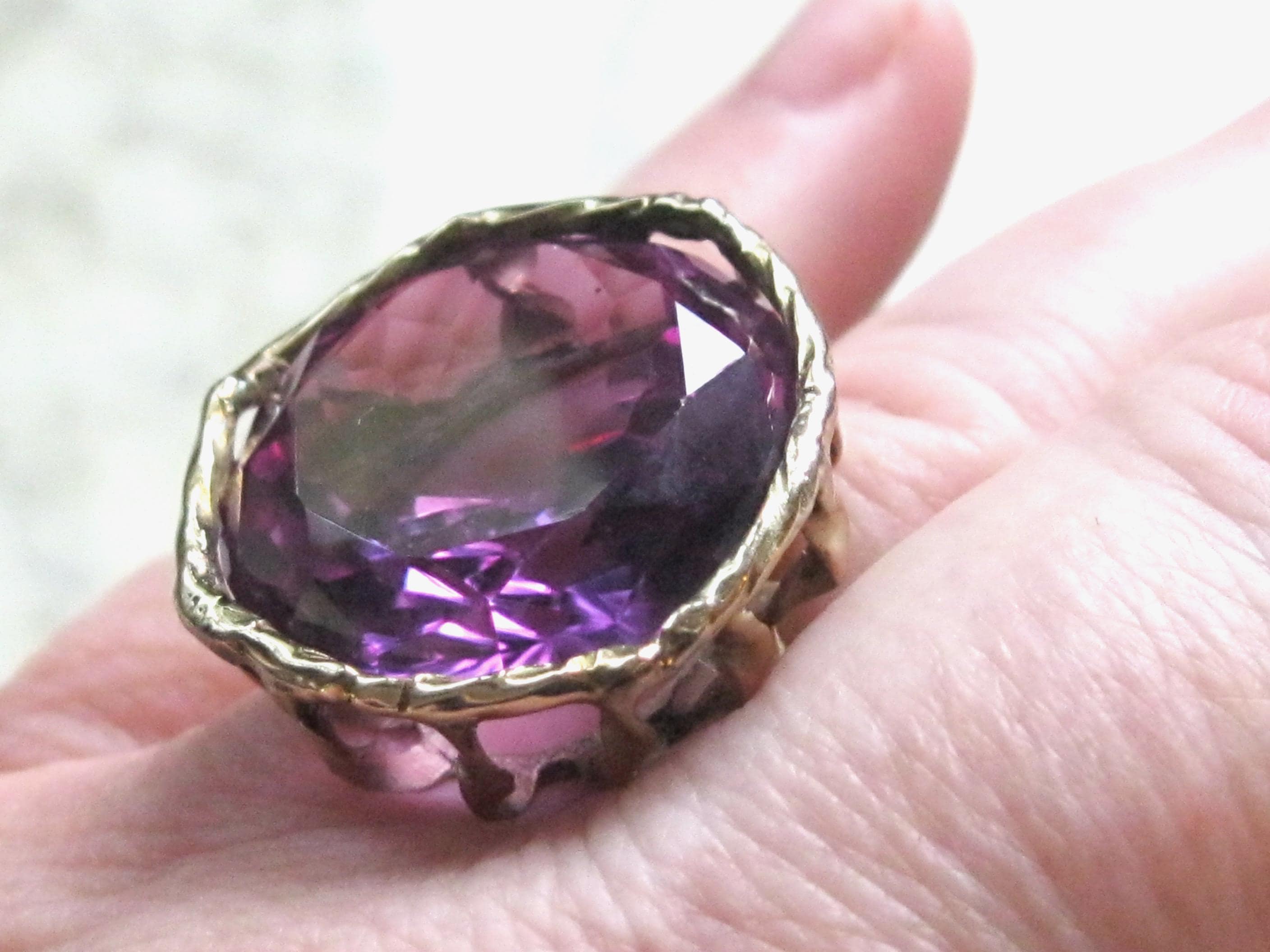 Wildly unique mid century mod ring with flashy alexandrite stone: