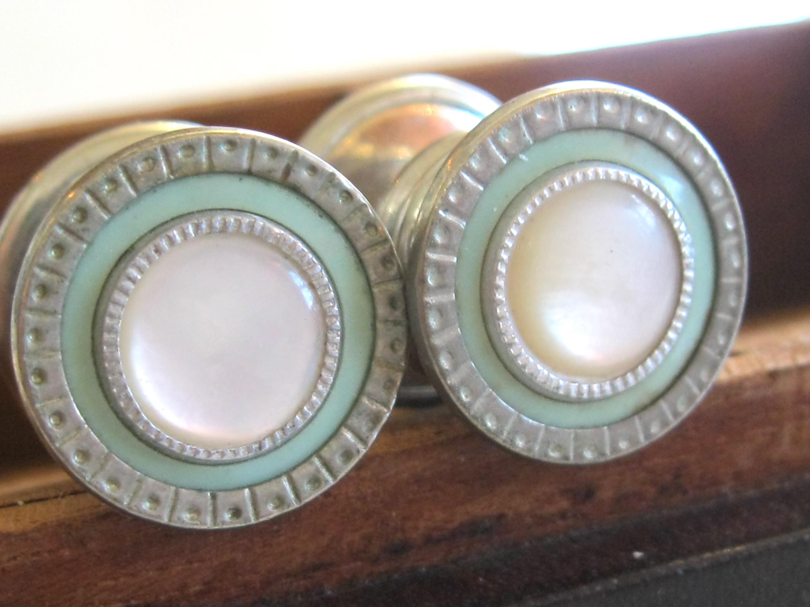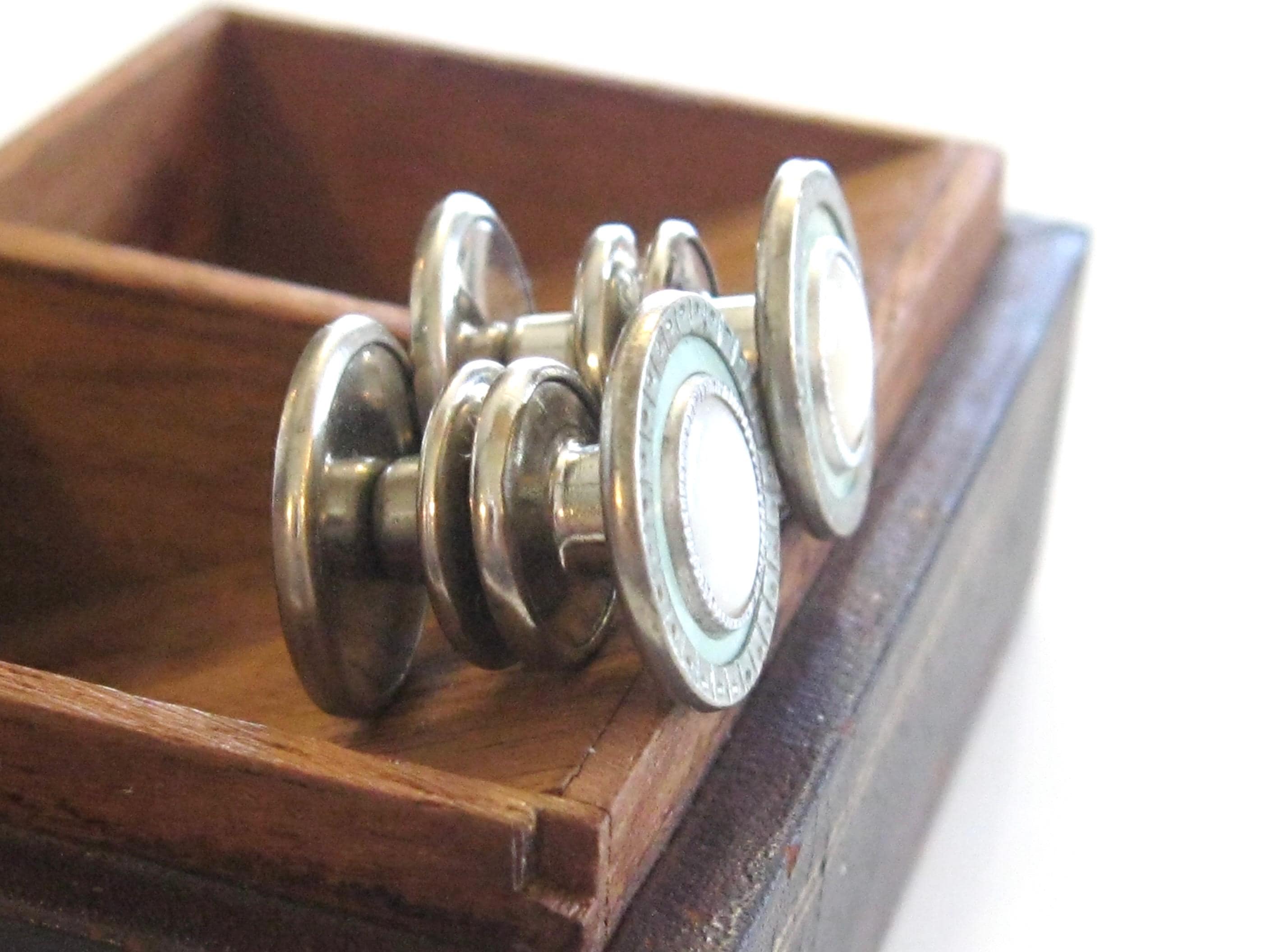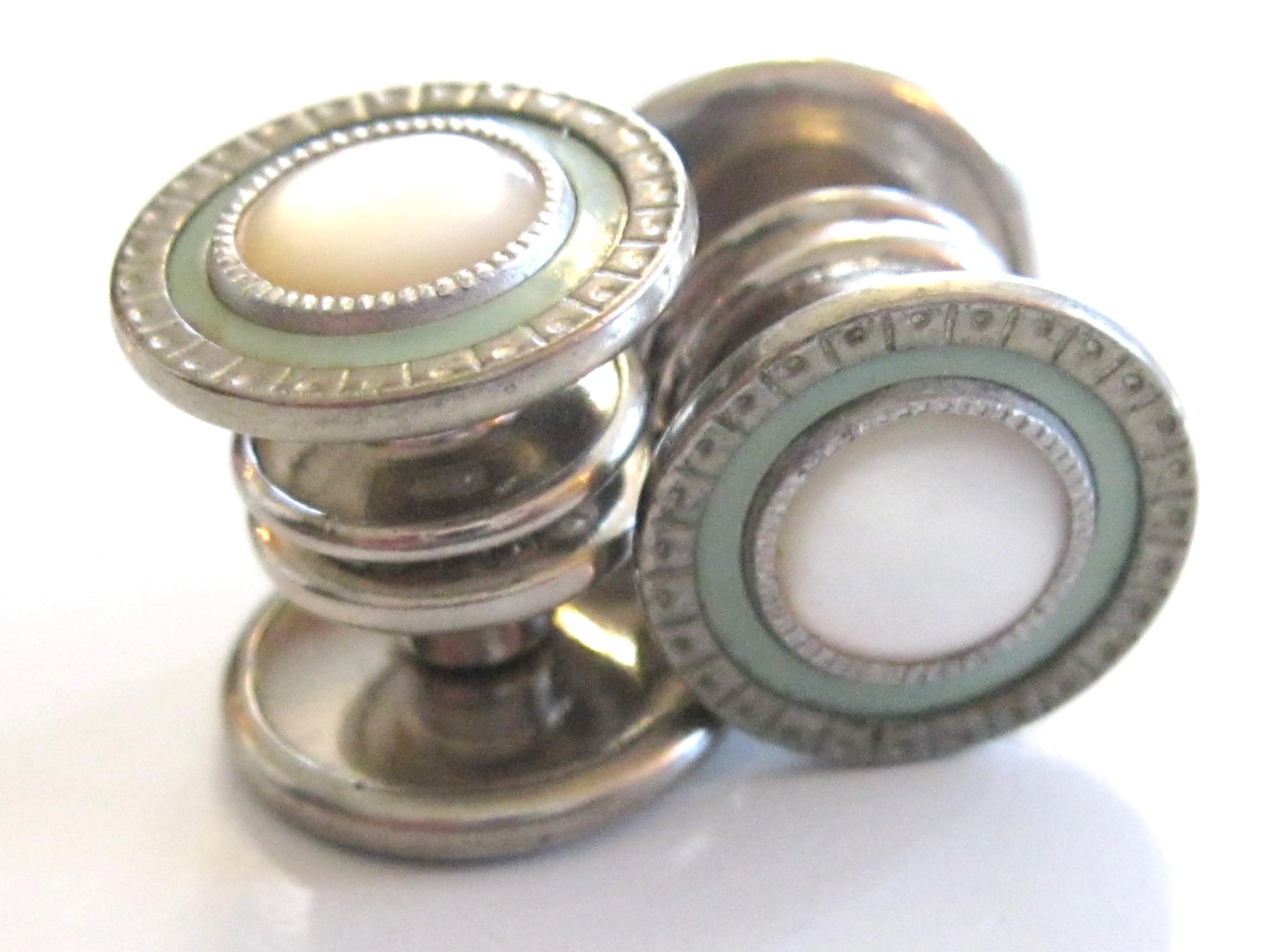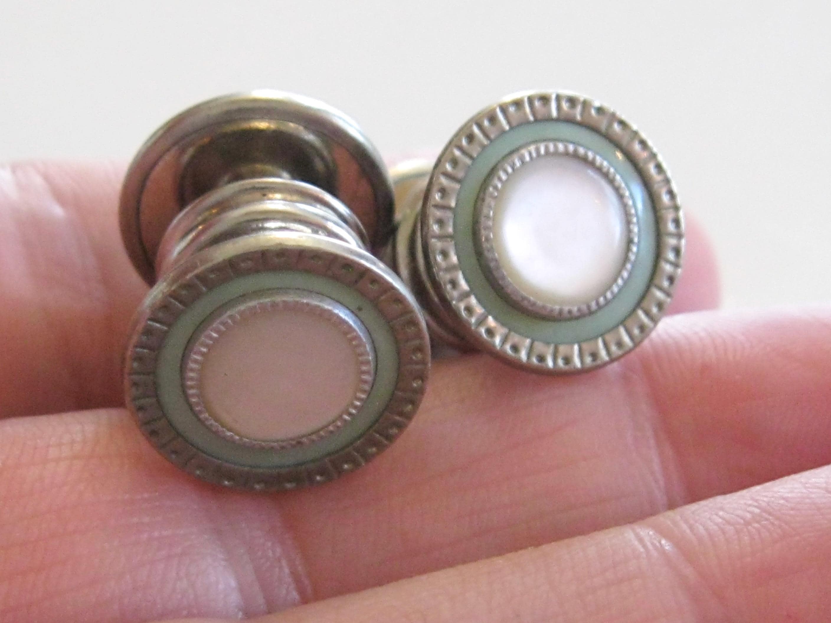 ADDITIONAL INFORMATION: Snap together / pull apart cufflinks or separable cuff buttons were an original deco concept unique to this historical period - only produced during the 1920's for the most part. They were produced by several companies (such as Kum-a-part by B&W / Baer & Wilde, Swank, Snap Link, Jiffy Links, Jem Link, Cobslink ... among others) and came in a wide array of materials, patterns, and color schemes to fit anyones "fancy"