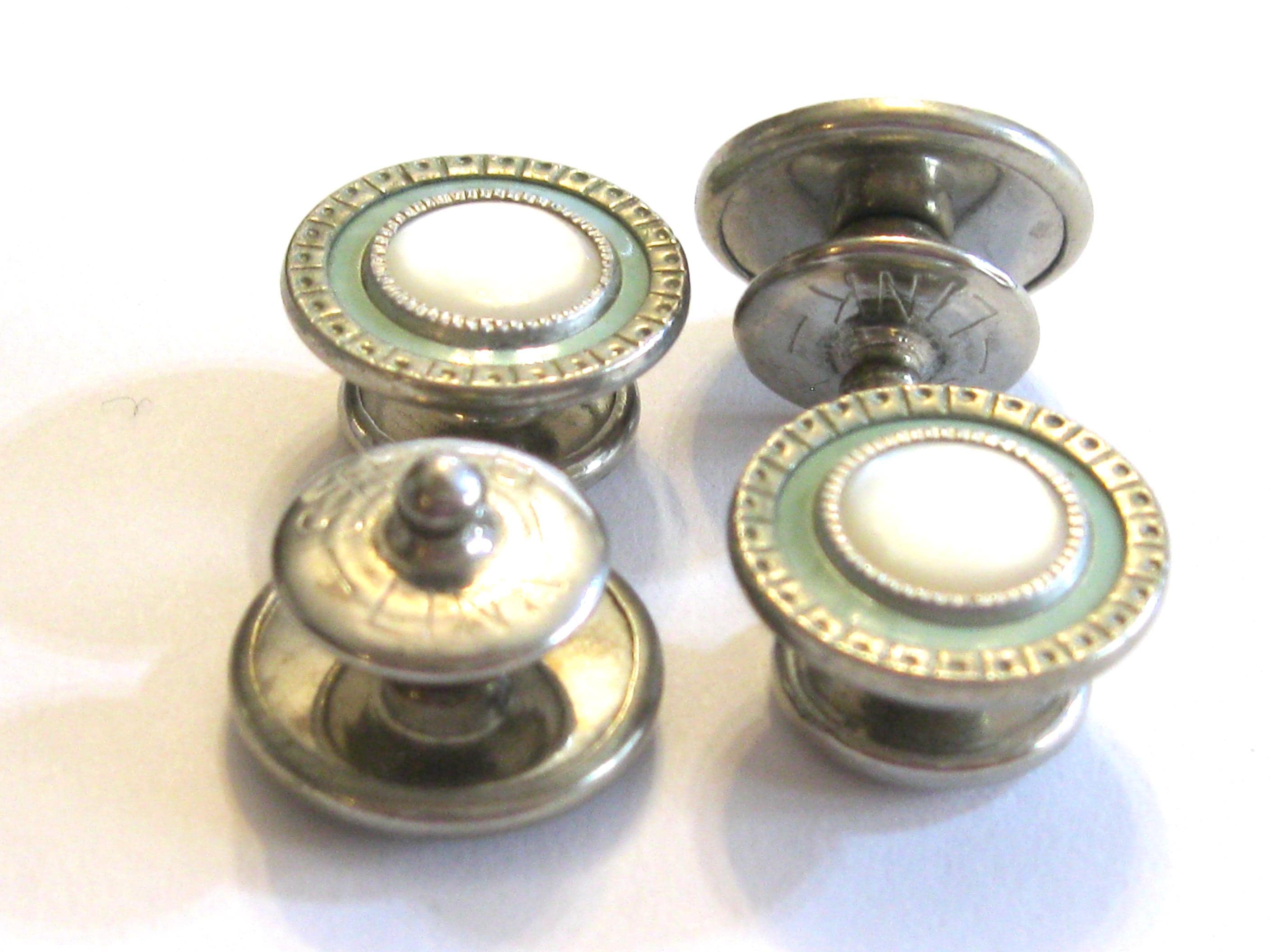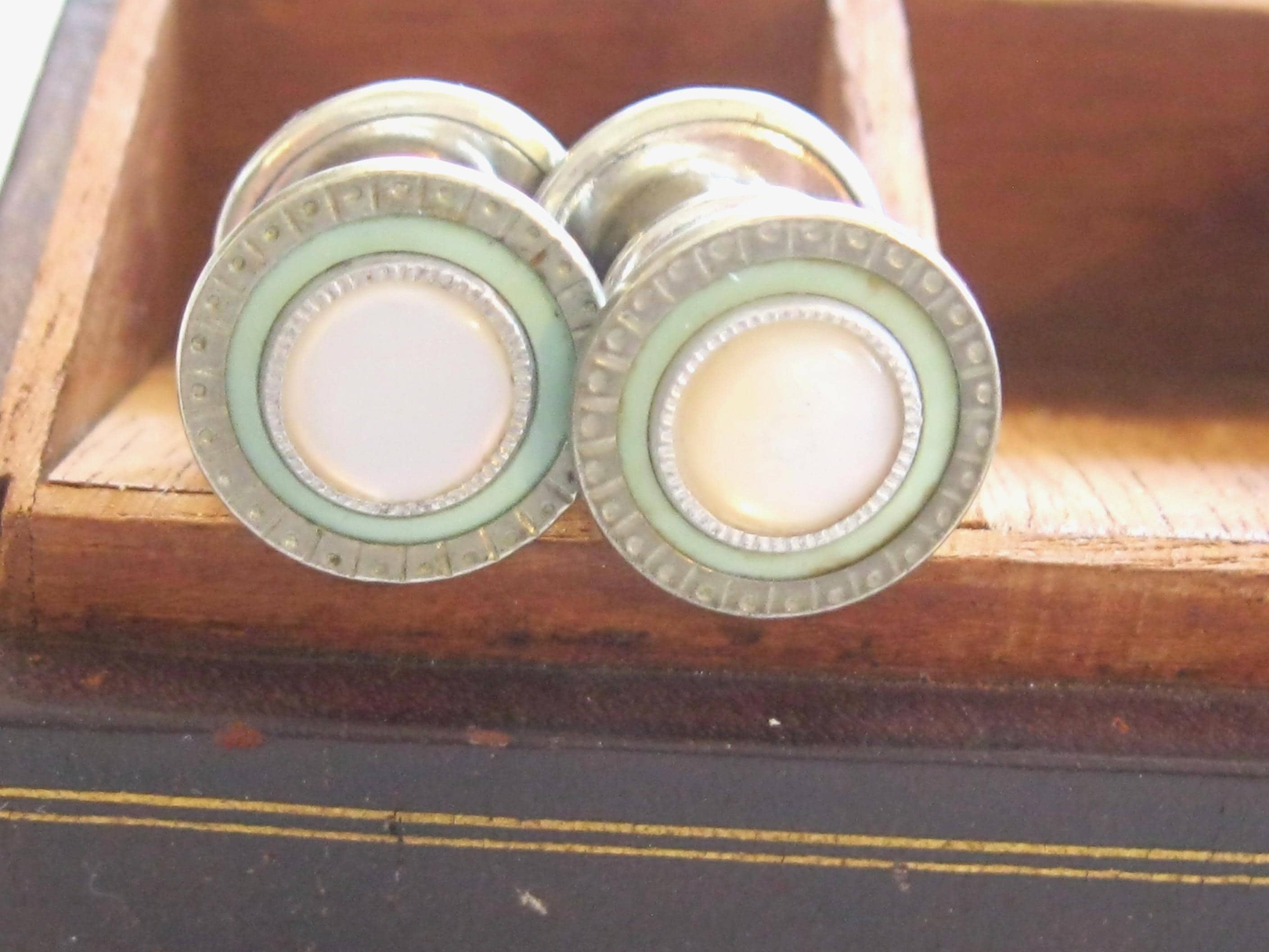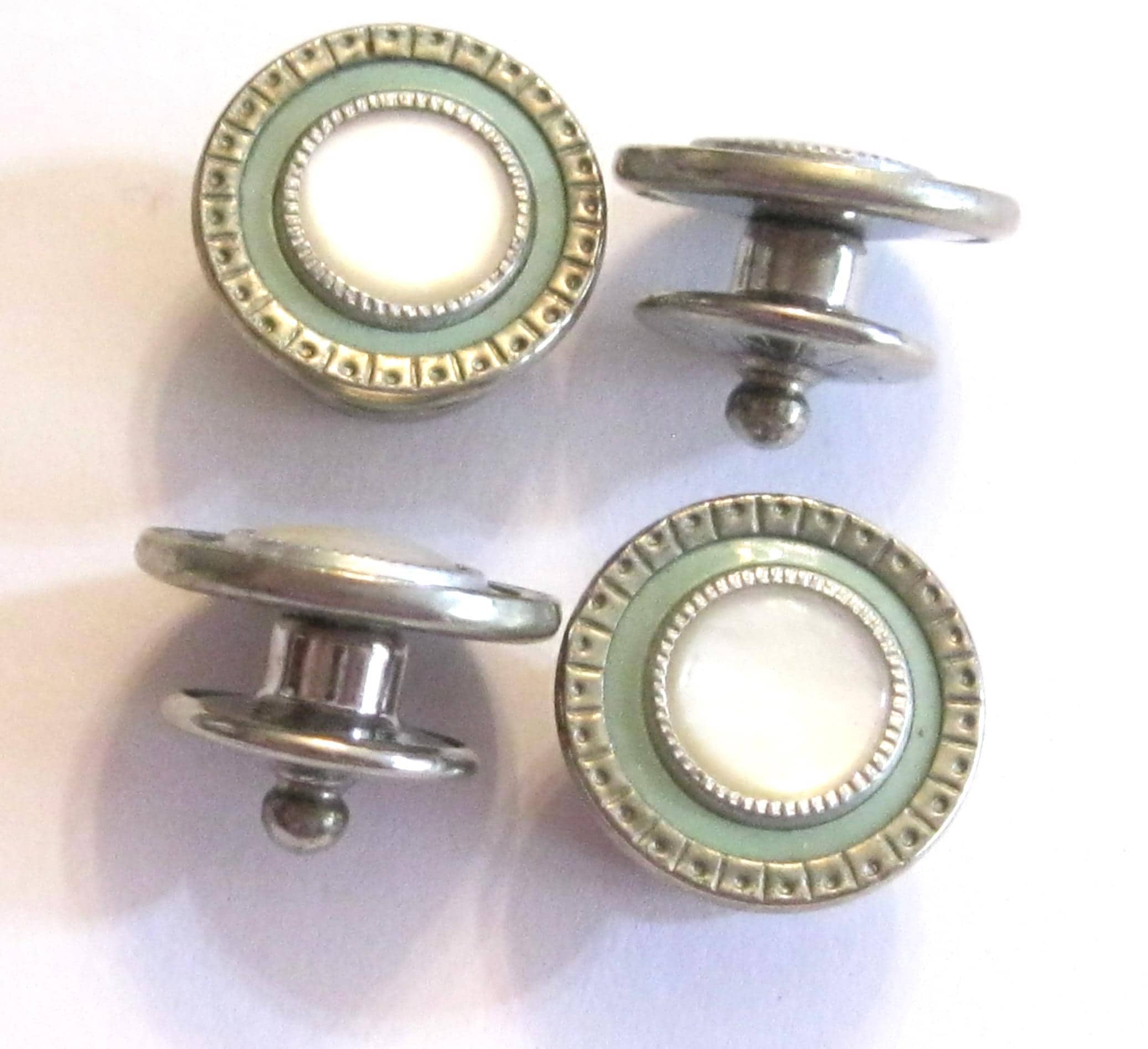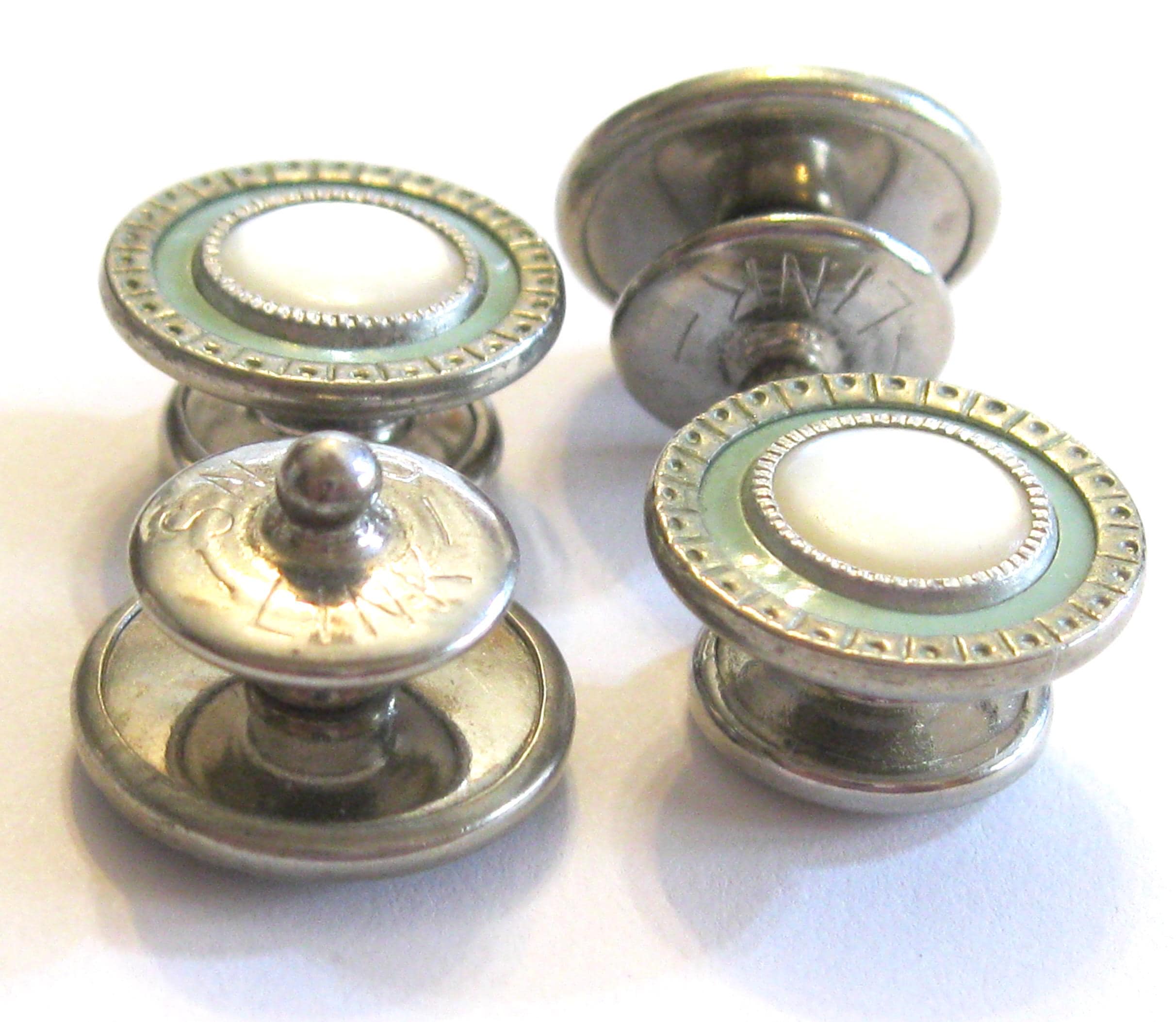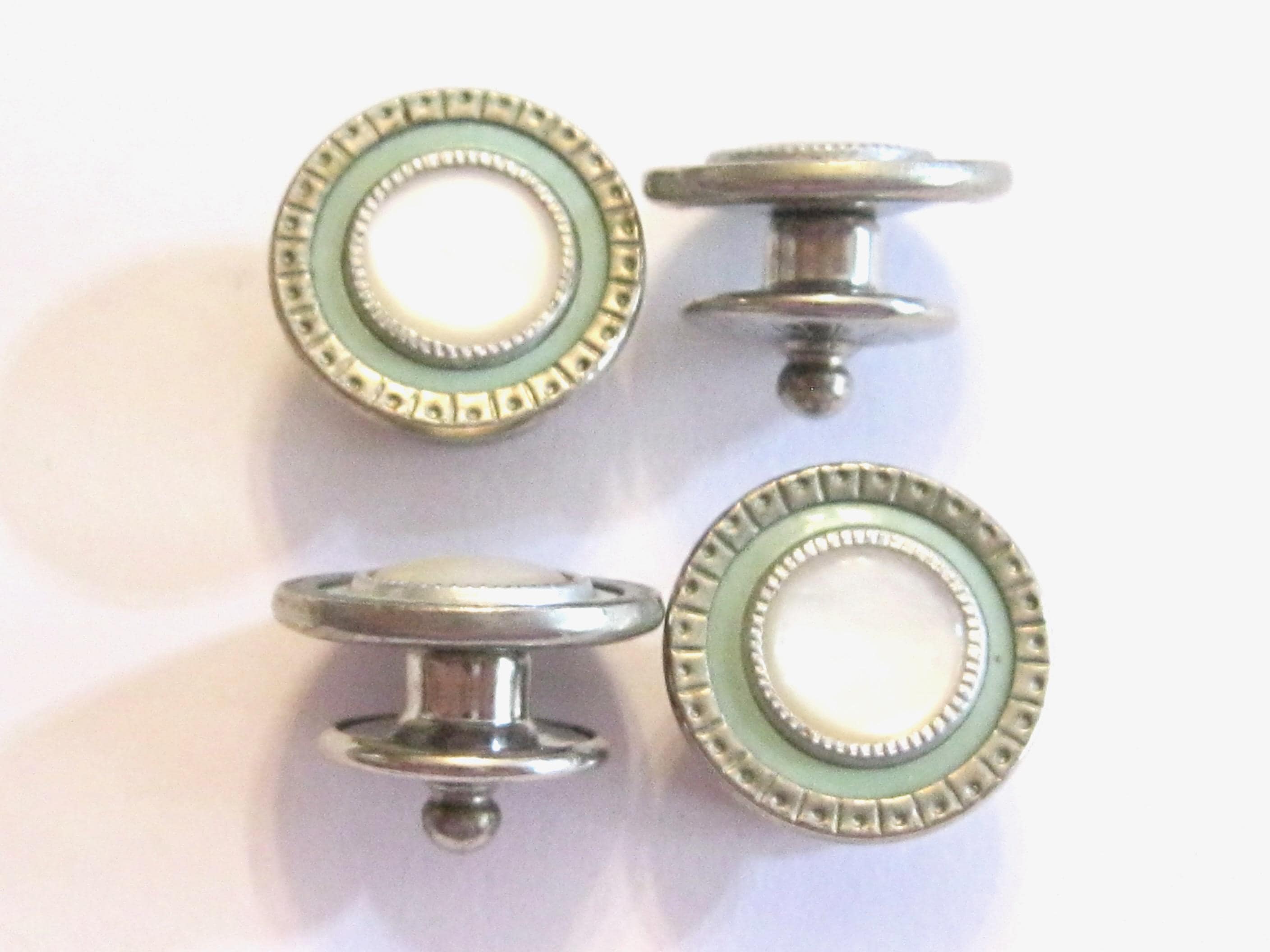 ADDITIONAL INFORMATION: Snap together / pull apart cufflinks or separable cuff buttons were an original deco concept unique to this historical period - only produced during the 1920's for the most part. They were produced by several companies (such as Kum-a-part by B&W / Baer & Wilde, Swank, Snap Link, Jiffy Links, Jem Link, Cobslink ... among others) and came in a wide array of materials, patterns, and color schemes to fit anyones "fancy"