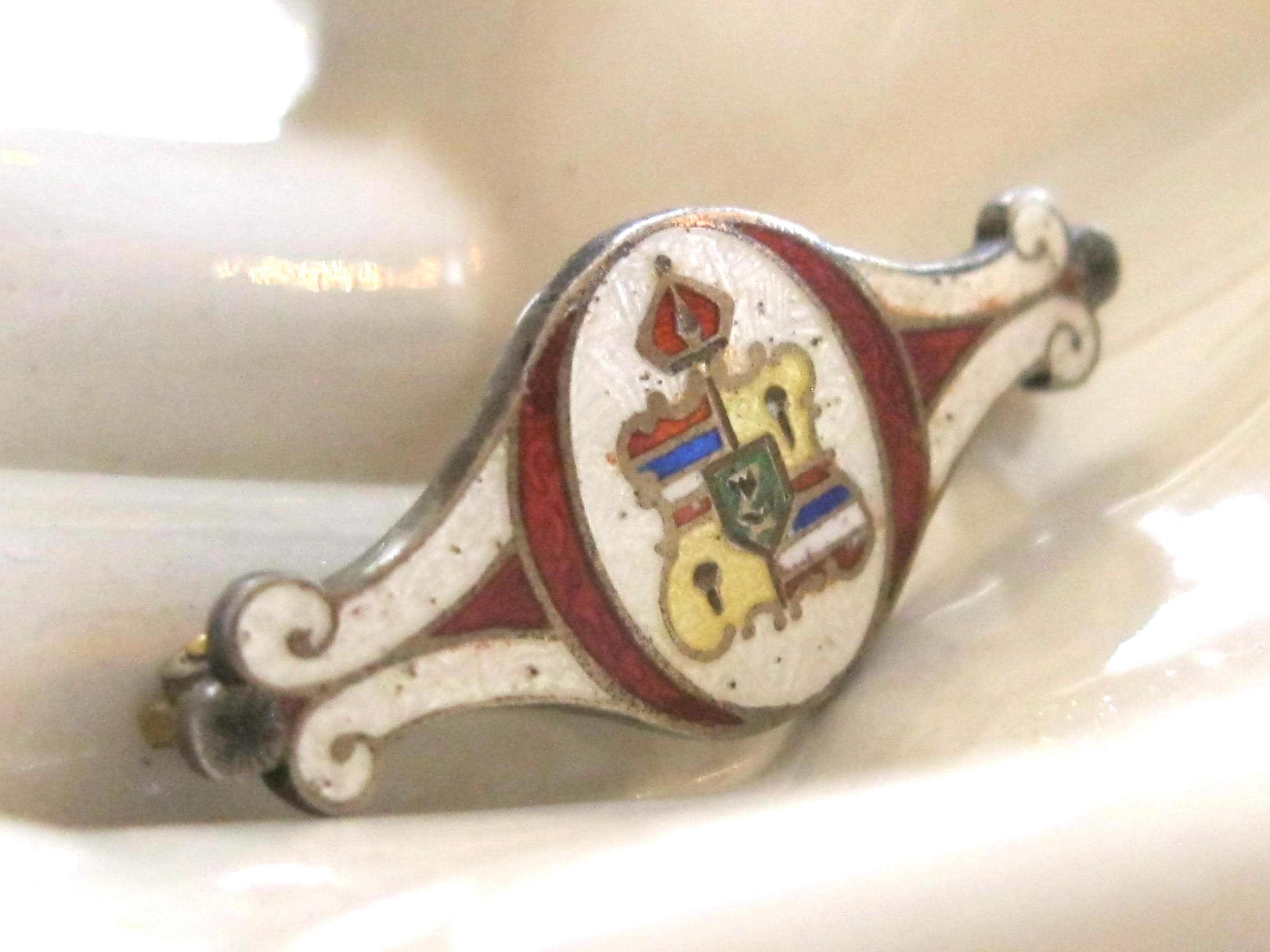 Highly rare and collectible antique sterling silver Hawaiian coat of arms brooch: