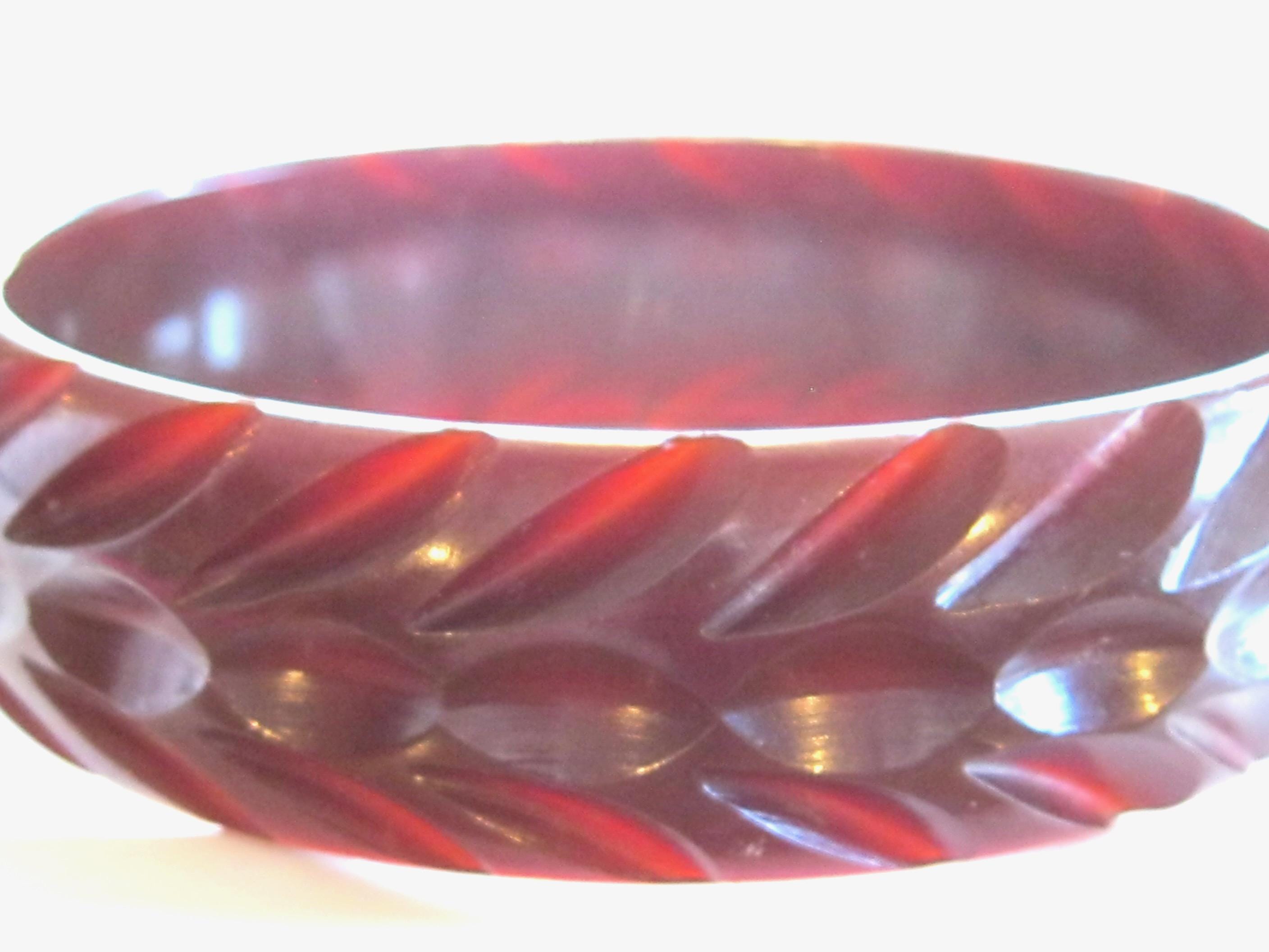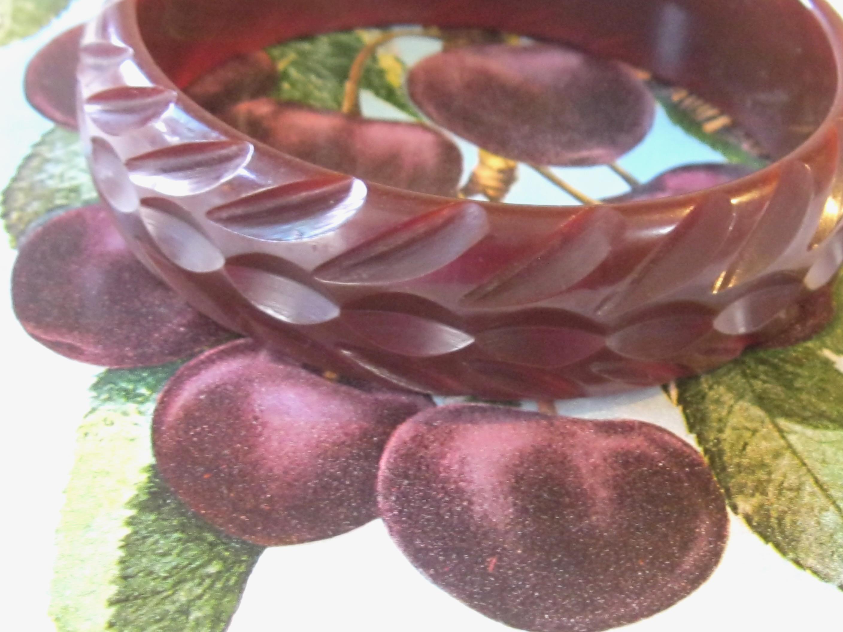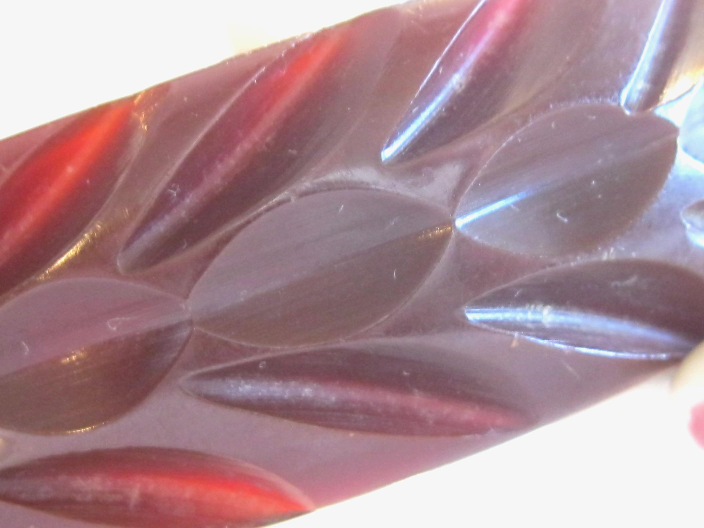 Vintage / antique art deco carved bakelite dark cherry amber bangle bracelet: