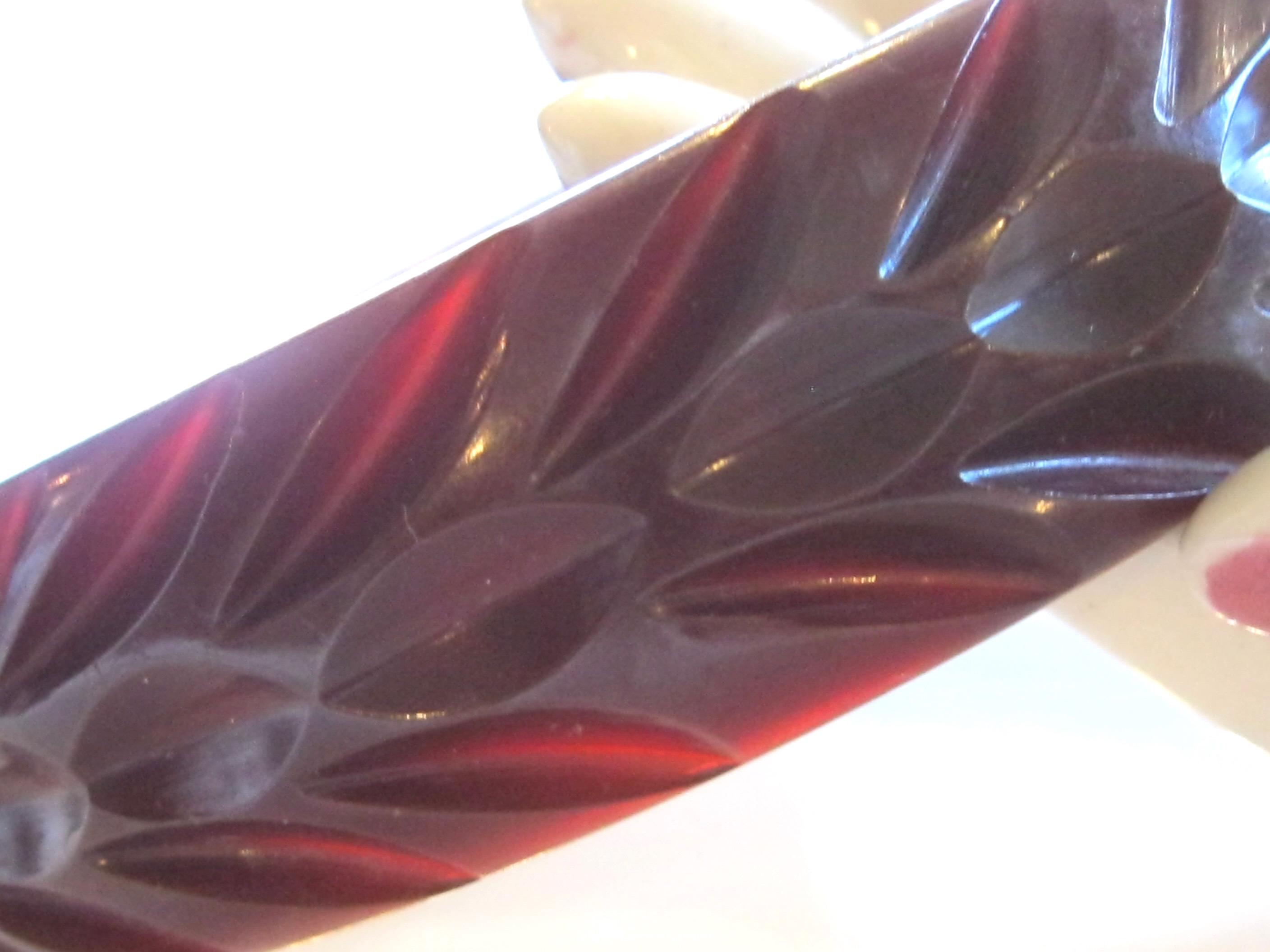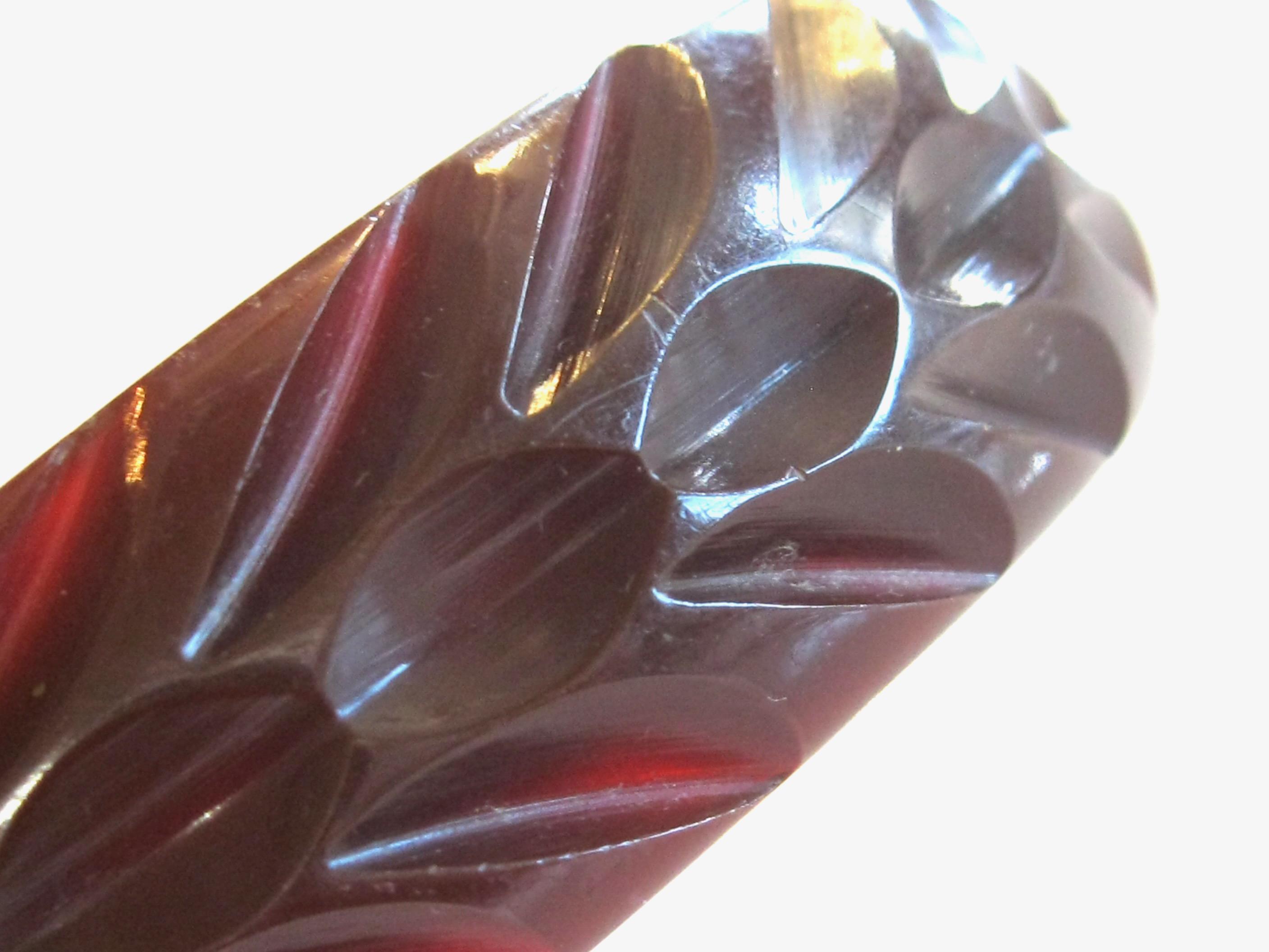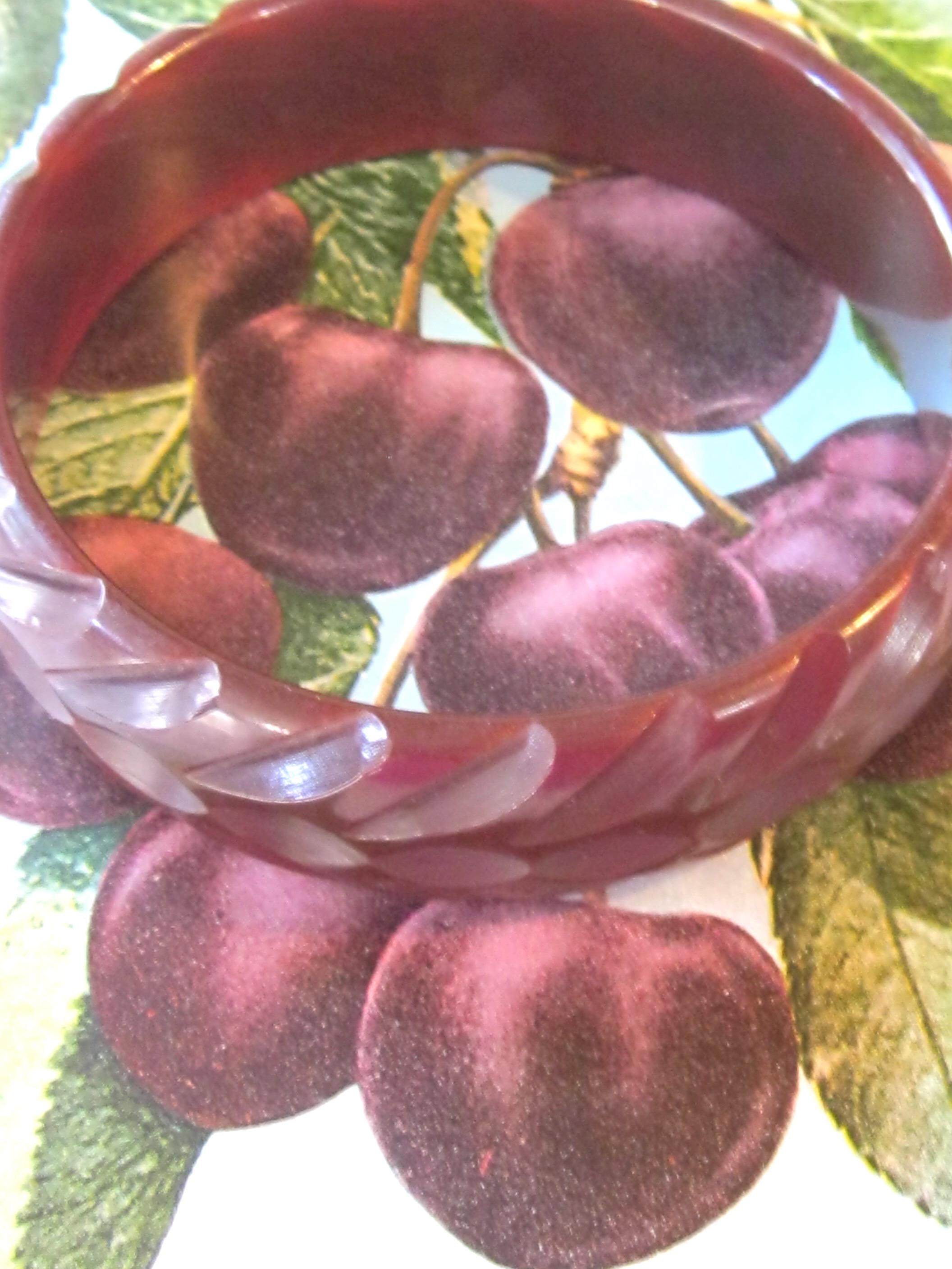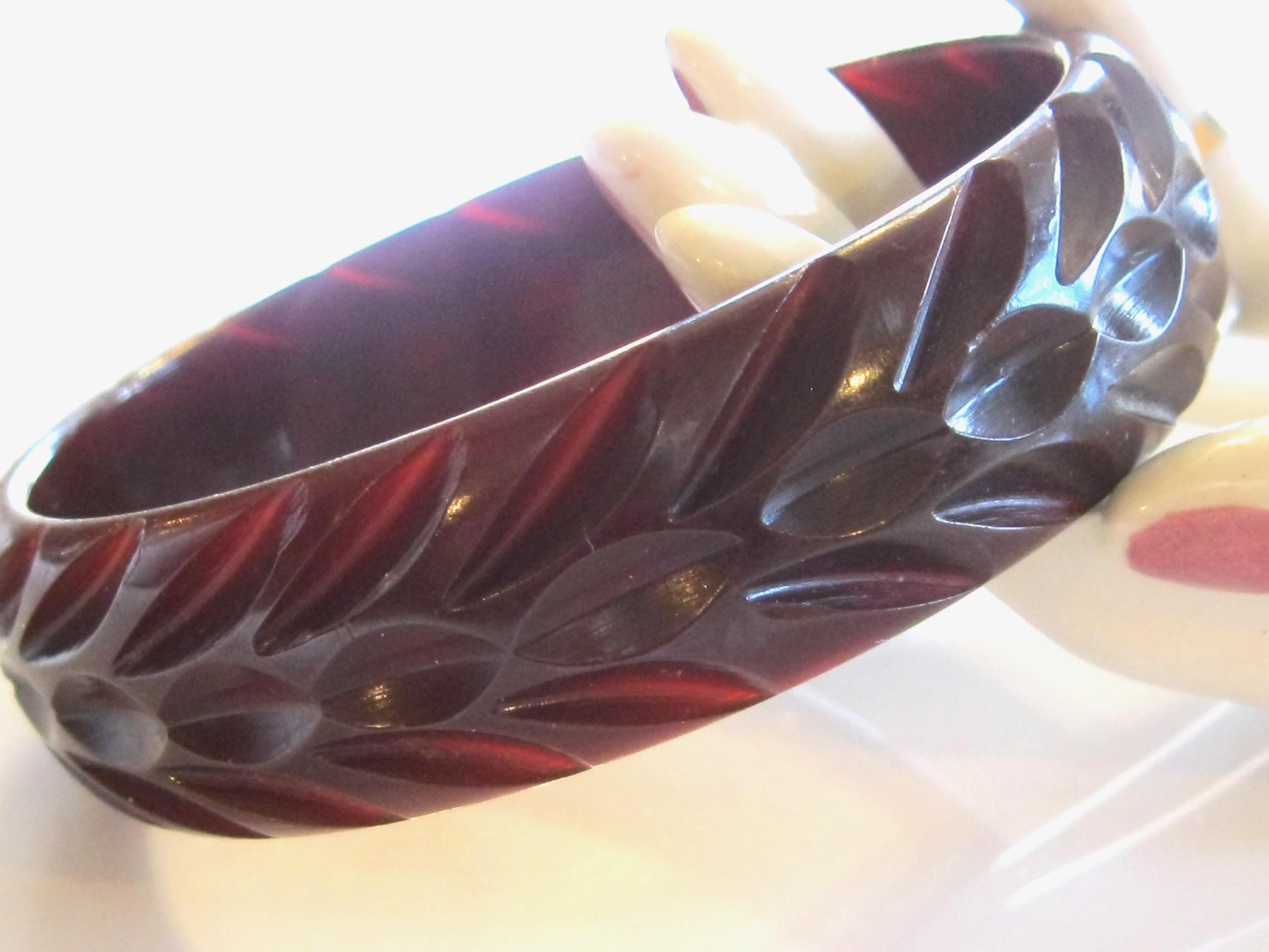 Vintage / antique art deco carved bakelite dark cherry amber bangle bracelet:
