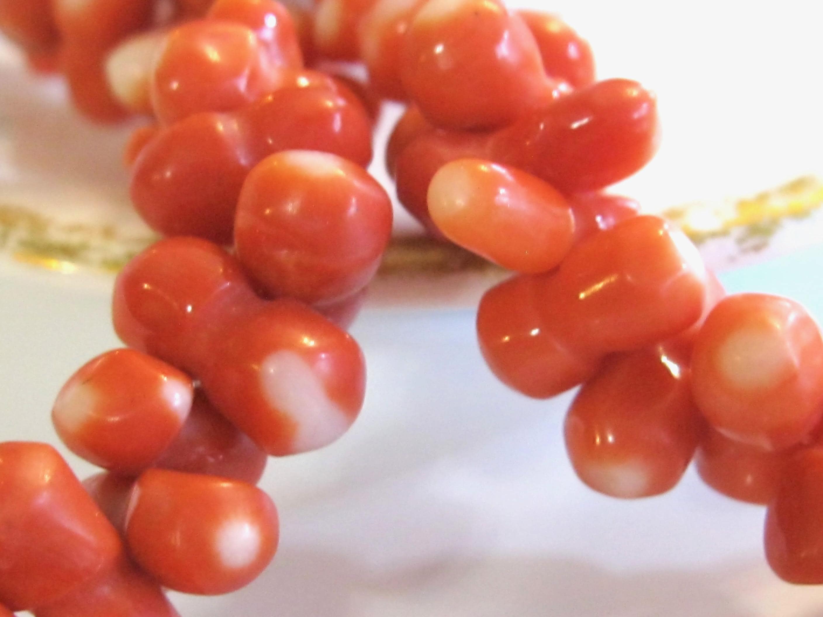 INTERESTING INFORMATION: Momo coral or Japanese Momo coral is very unique, high end and coveted by collectors. Characterized by its distinct white center - known as soul or fu, it is known to be very durable and the highest grades have more of an intense salmon orange red shade than other species of coral. Momo coral is also associated with vitality, good health, and gentle strength