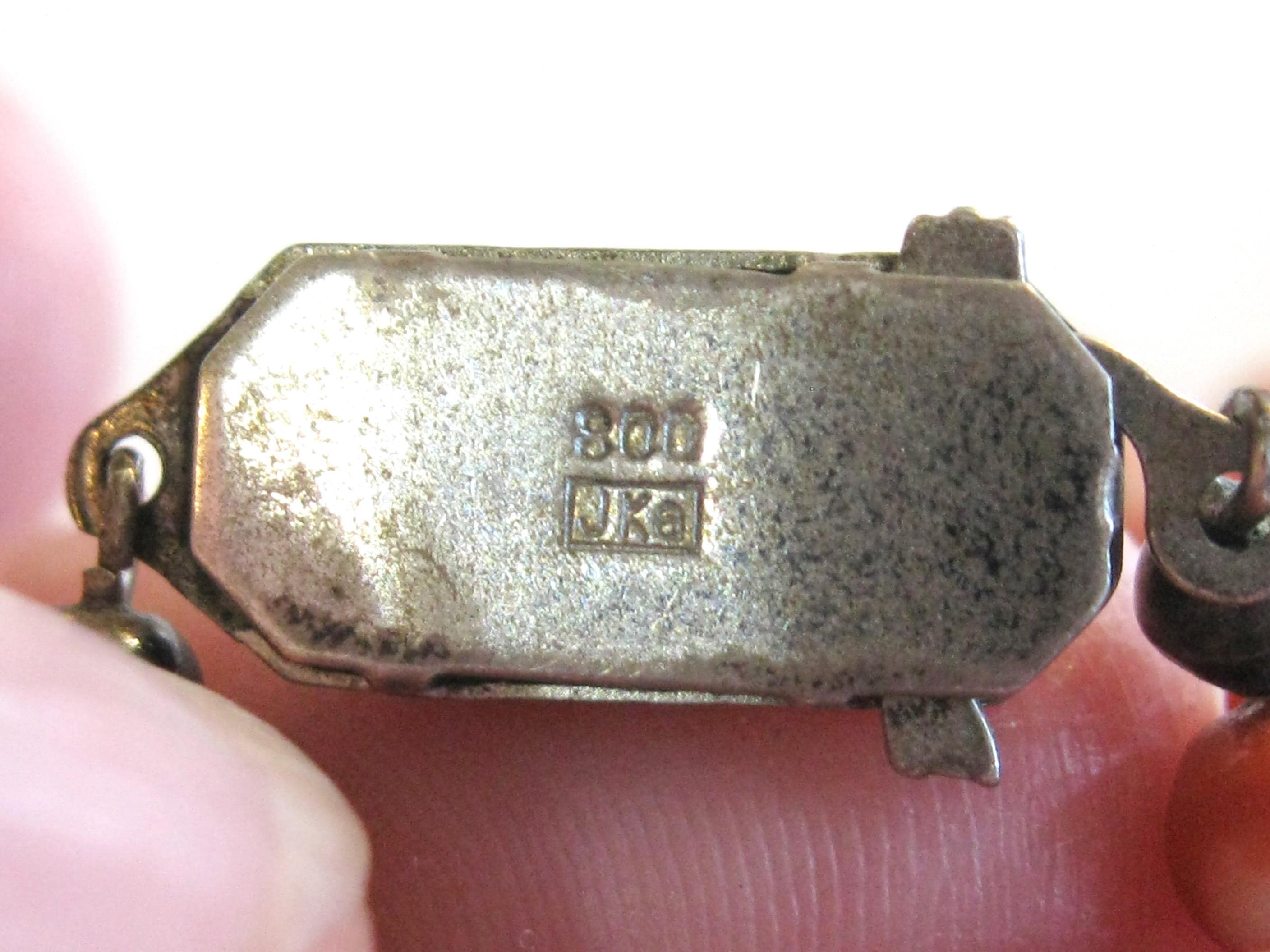 MARKINGS: Clasp is marked JKA 800 - Denoting the maker and silver grade. The mark is that of J Kohle - a German company known for producing high quality clasps and jewelry components since 1872