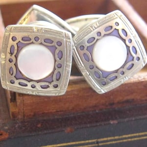 Perfect antique art deco enamel on sterling 1920's 1930's cuff links: